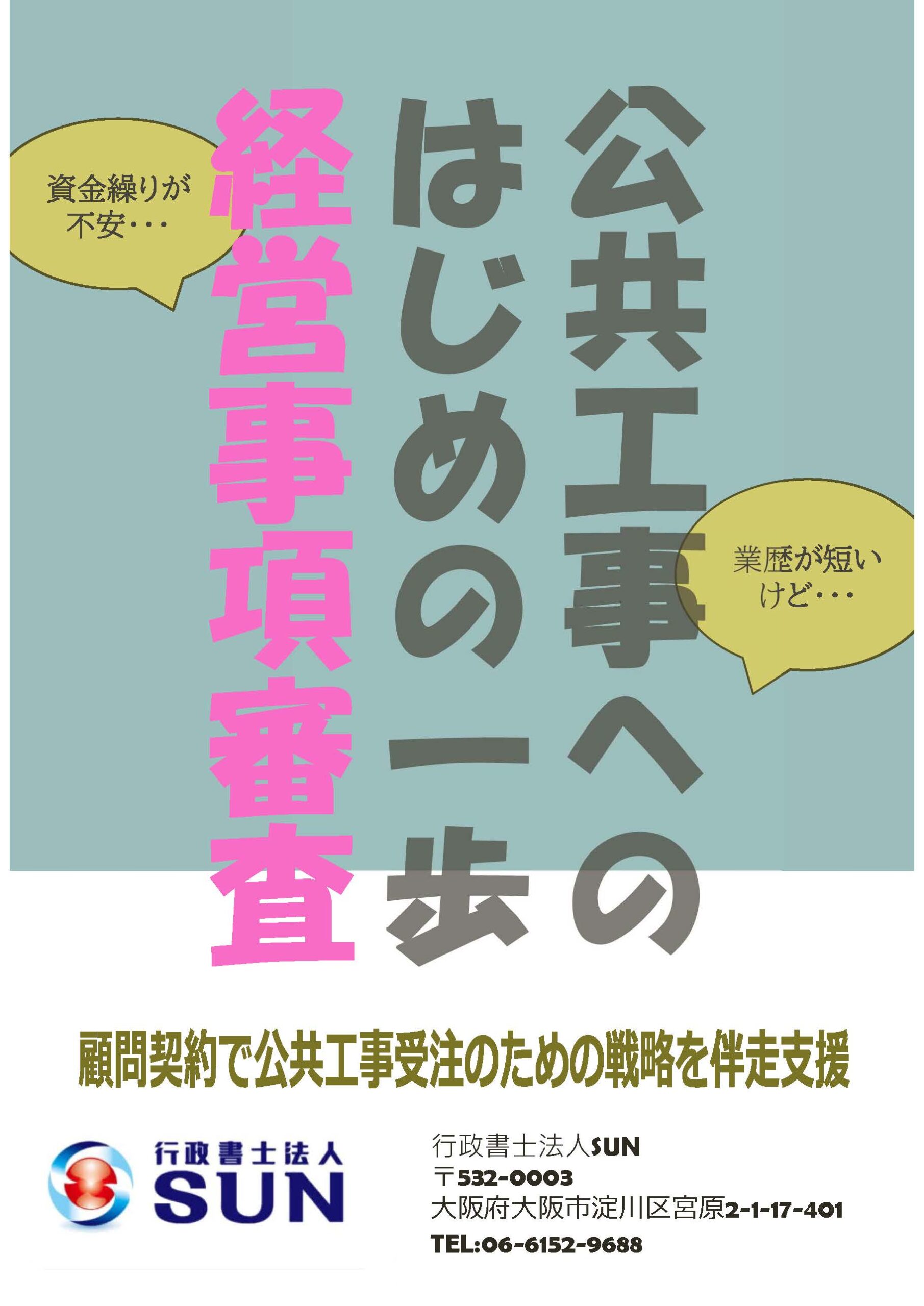 大阪建設業許可申請.com 行政書士法人SUN ✆ 06-6152-9688